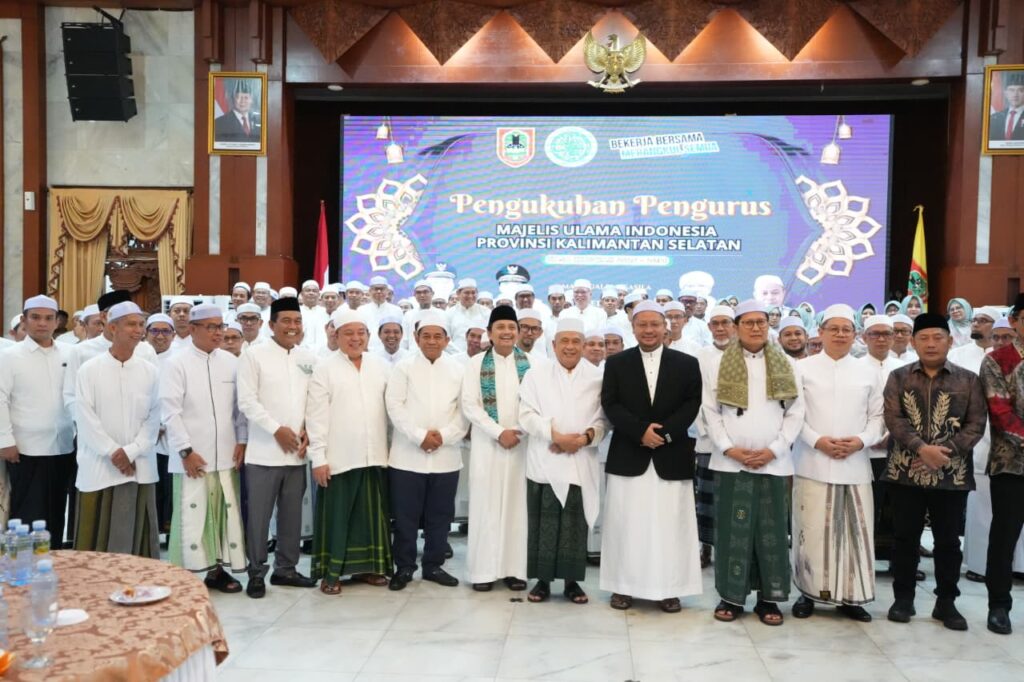 Pengukuhan/pelantikan kepengurusan MUI Kalsel yang dirangkai Musyawarah Kerja Daerah (Mukerda) I tahun 2026 ini dihadiri Wakil Gubernur Kalsel Hasnuryadi Sulaiman disaksikan sejumlah kepala daerah, anggota Forkopimda serta pengurus MUI Provinsi dan Kabupaten/Kota se Kalsel.