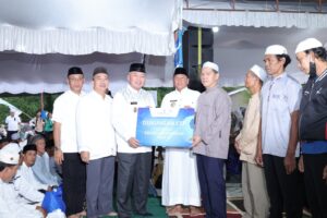 Kegiatan ini juga menjadi momentum penyaluran bantuan sosial. Bupati Batola, H. Bahrul Ilmi, menyerahkan bantuan Safari Ramadan sebesar Rp25 juta secara simbolis kepada pihak Kecamatan Alalak. Di saat yang sama, Gubernur Muhidin menyerahkan bantuan CSR dari Bank Kalsel kepada sejumlah penerima manfaat.